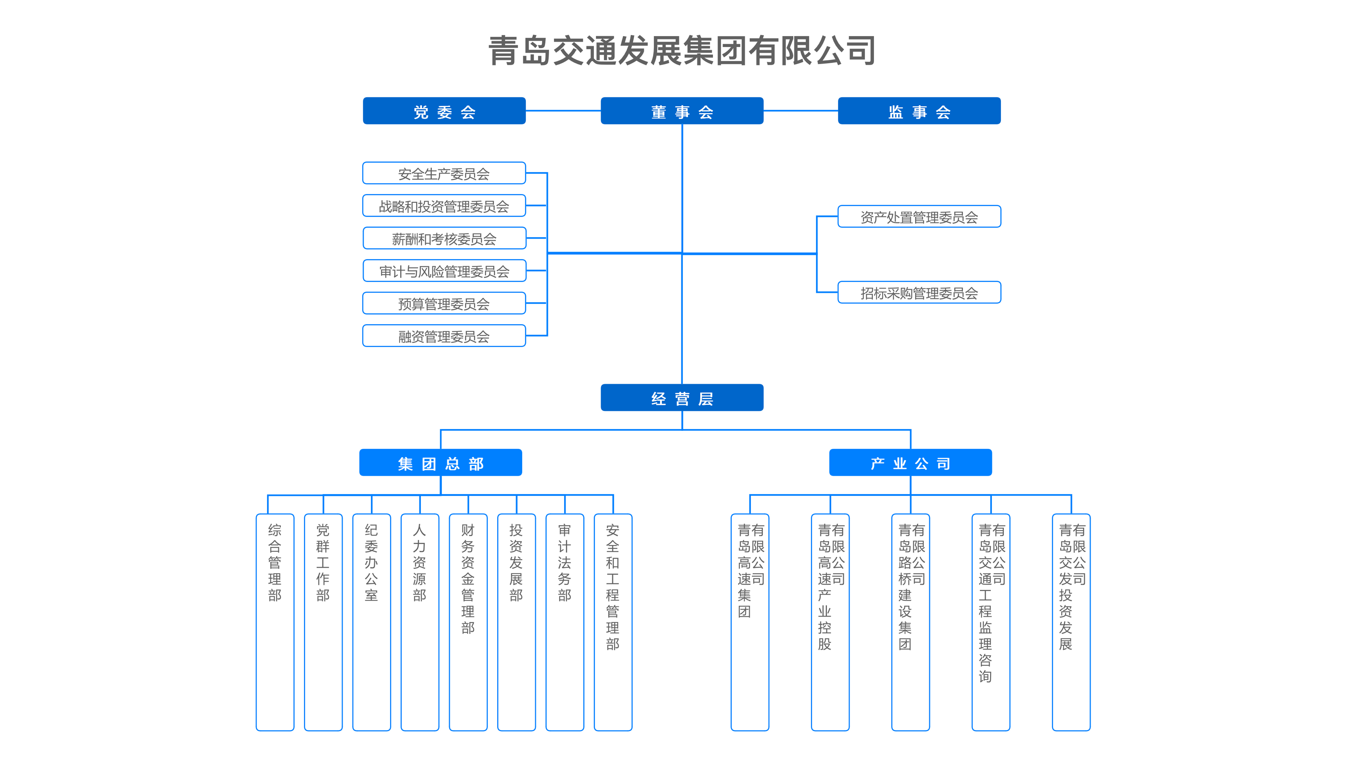 青島交通發(fā)展集團(tuán)有限公司(以下簡(jiǎn)稱“交發(fā)集團(tuán)”)成立2012年5月,注冊(cè)資本10億元,定位為青島市交通建設(shè)投融資主體,負(fù)責(zé)所轄高速公路等交通基礎(chǔ)設(shè)施的運(yùn)營(yíng)、養(yǎng)護(hù)、管理工作和投融資建設(shè)任務(wù),承擔(dān)青島市未來(lái)高速公路發(fā)展和交通基礎(chǔ)設(shè)施建設(shè)投融資等職能?,F(xiàn)有所屬二級(jí)企業(yè)18戶,干部職工2100余人。